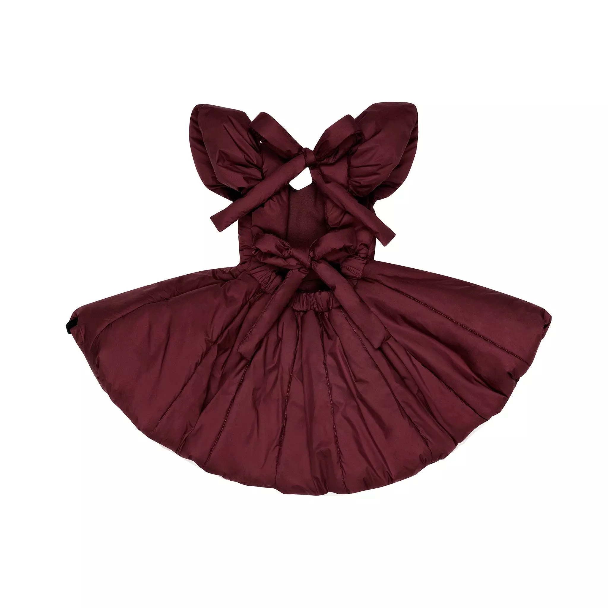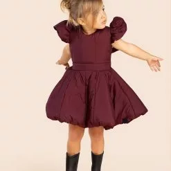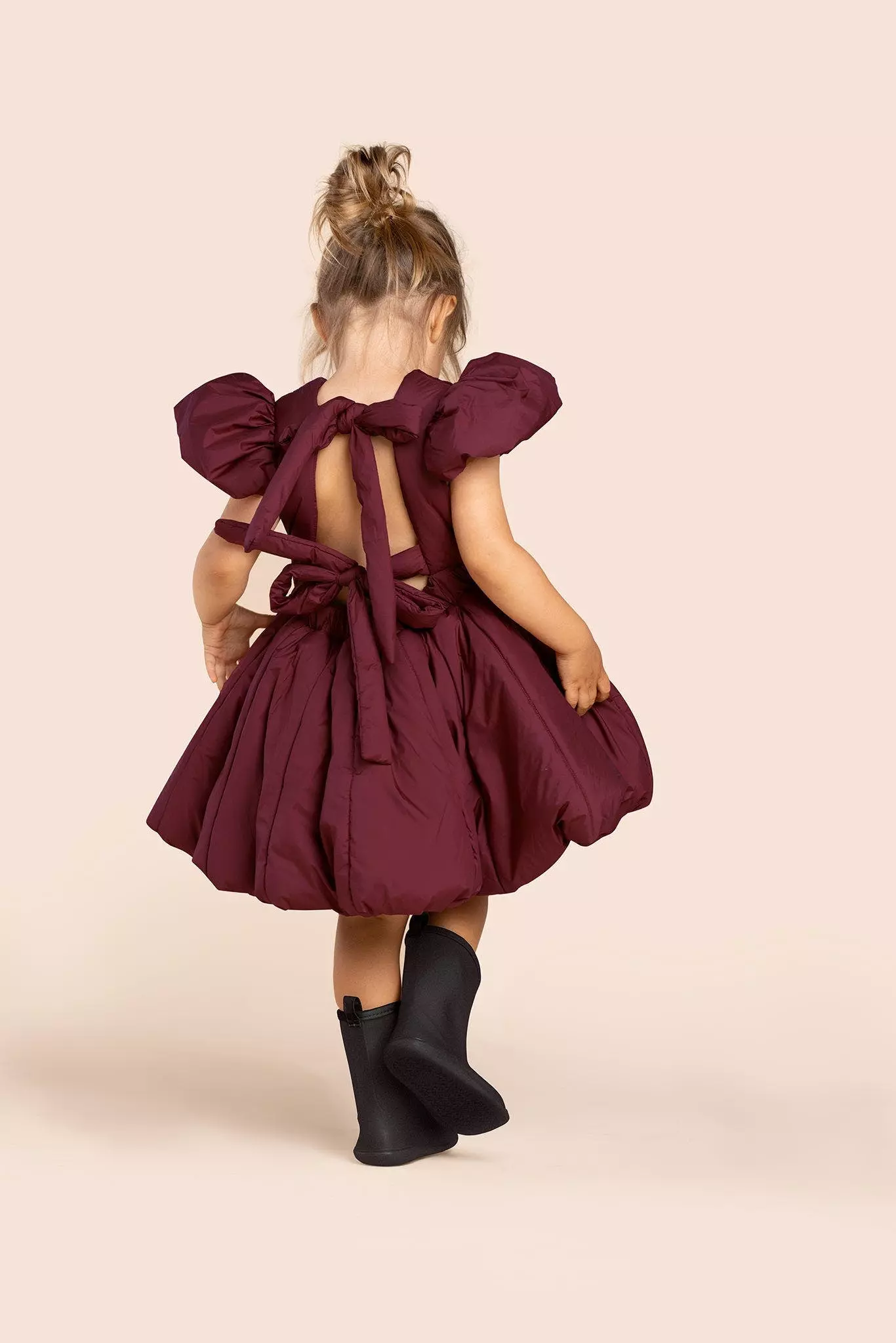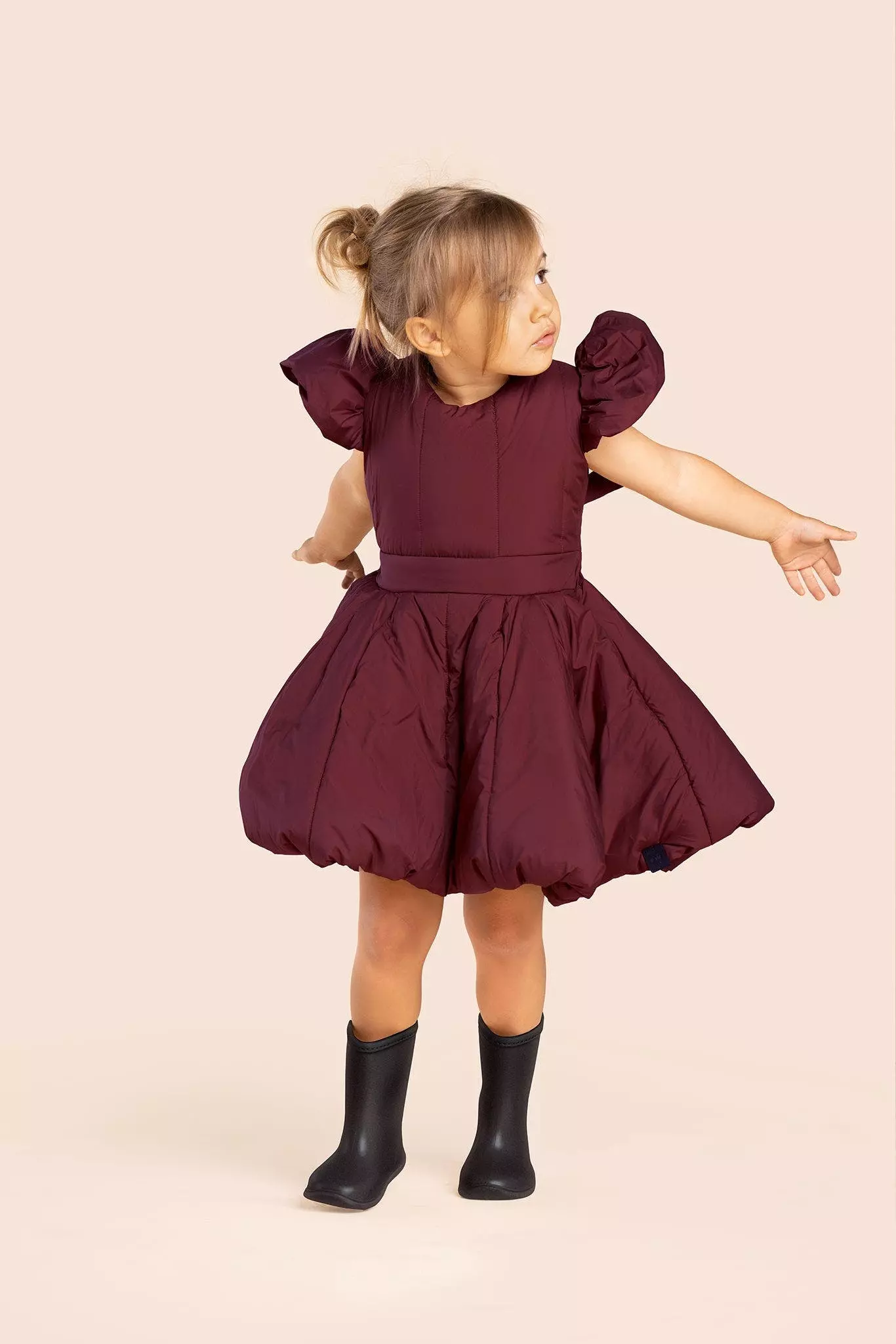 However you style it, with a sweatshirt underneath, short sleeve tee under and cardigan over we’re huge fans of this unique number. Featuring little cap sleeves and bow ties at the back, generously shirred skirt and super soft quilted cotton jersey lining it’s a sure show stopper.