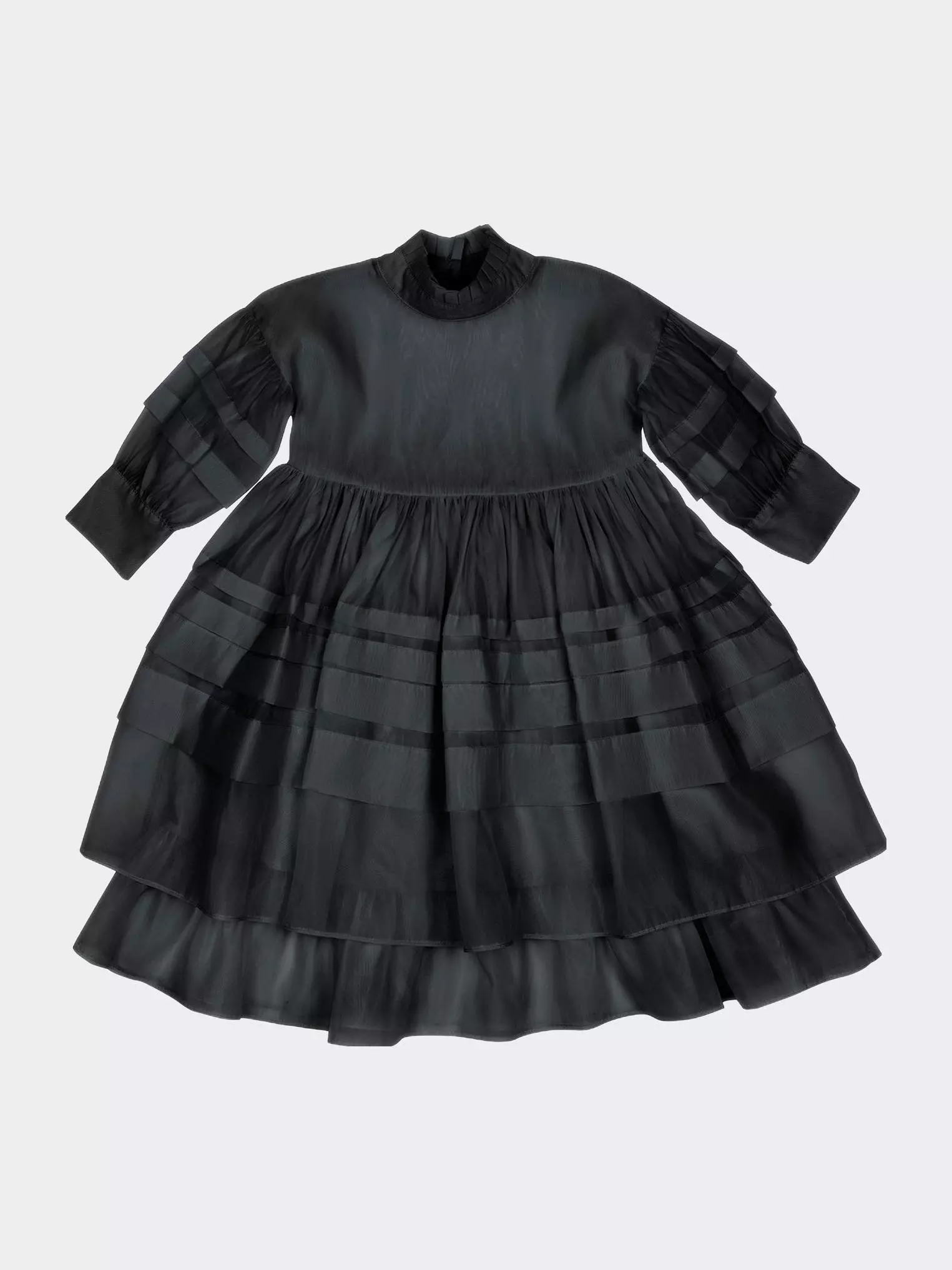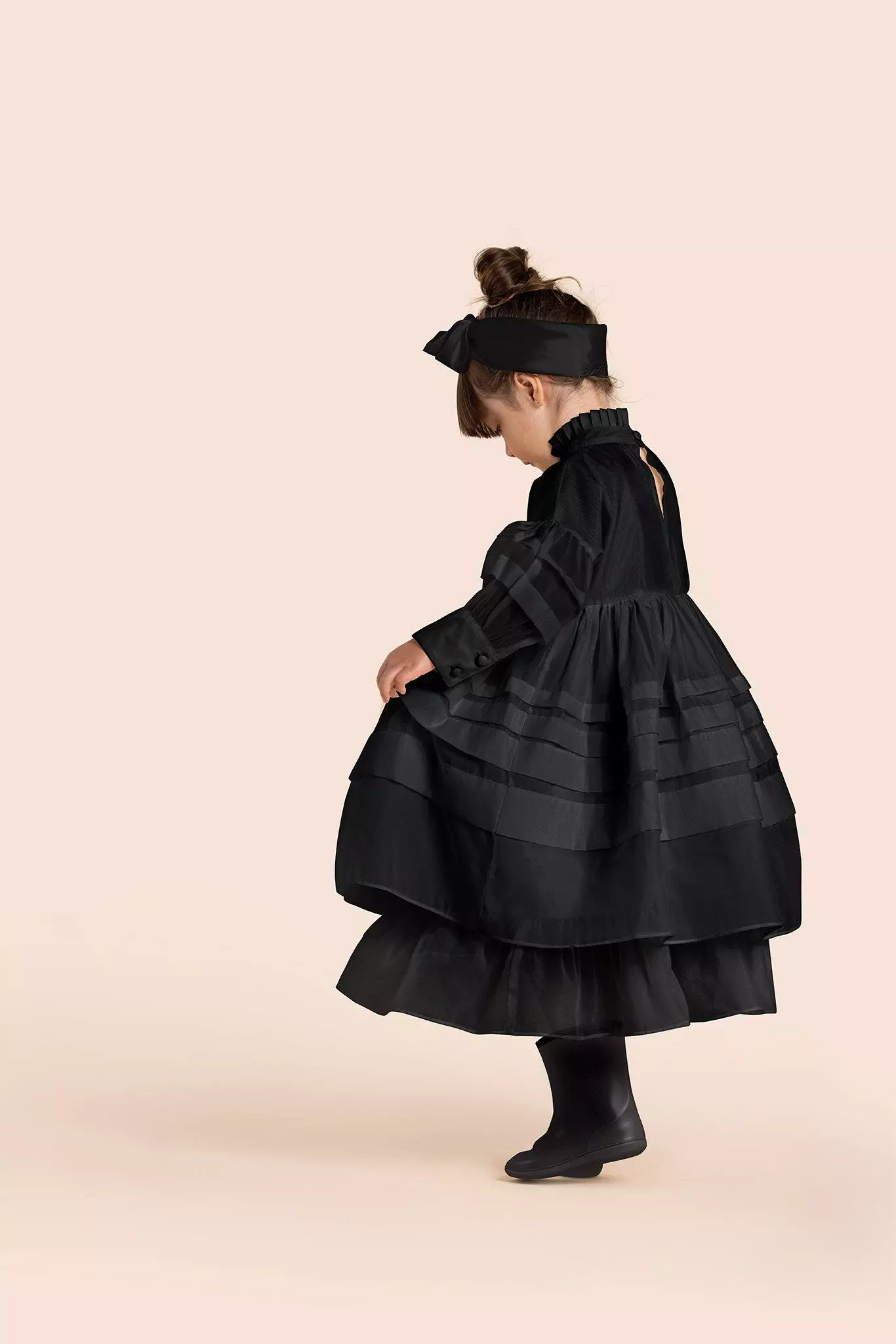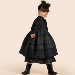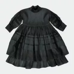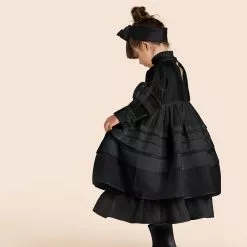 The ultimate special occasion dress. Designed with elaborate knife pleats throughout, pleated collar and off-shoulder bishop sleeve with wide cuff. The bodice is wide fit to keep your girl comfortably while winning the best-dressed award.