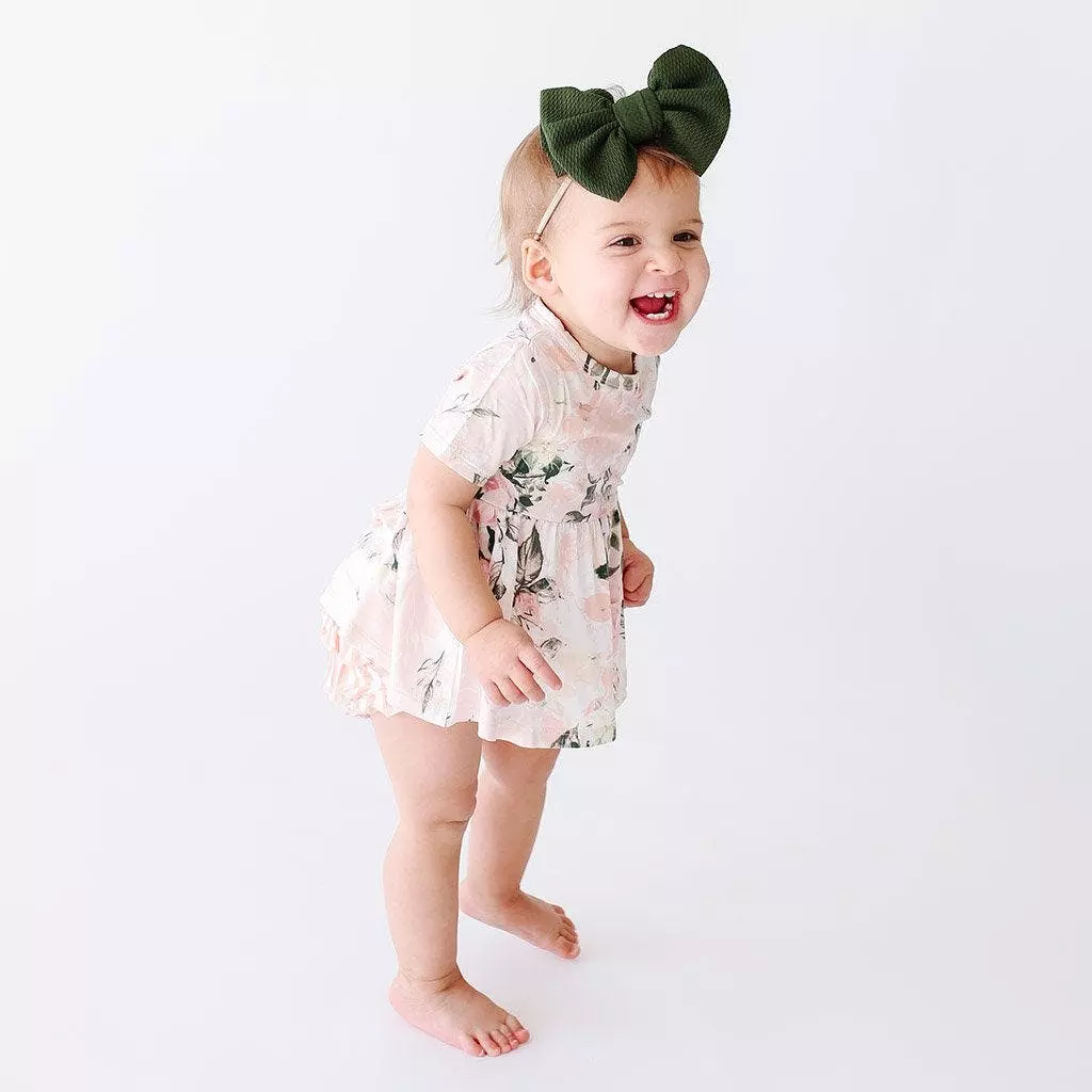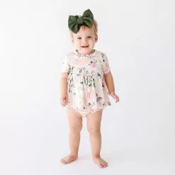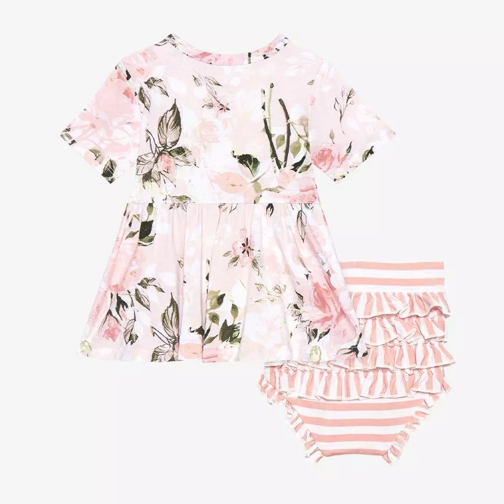 – 2-piece set includes peplum top and ruffled bummies