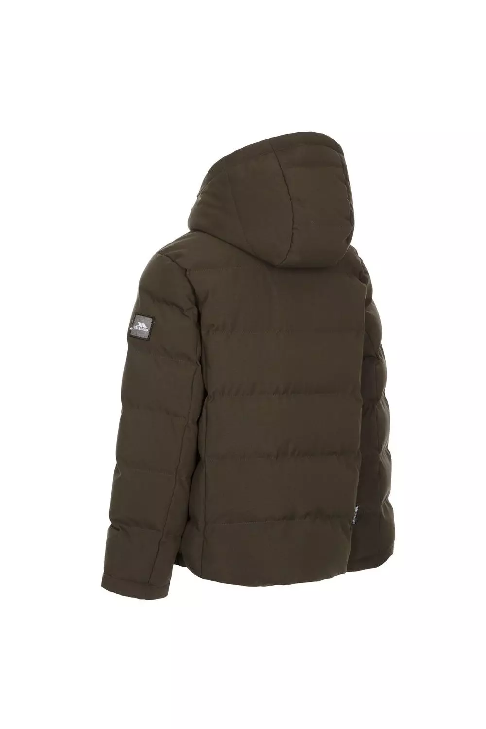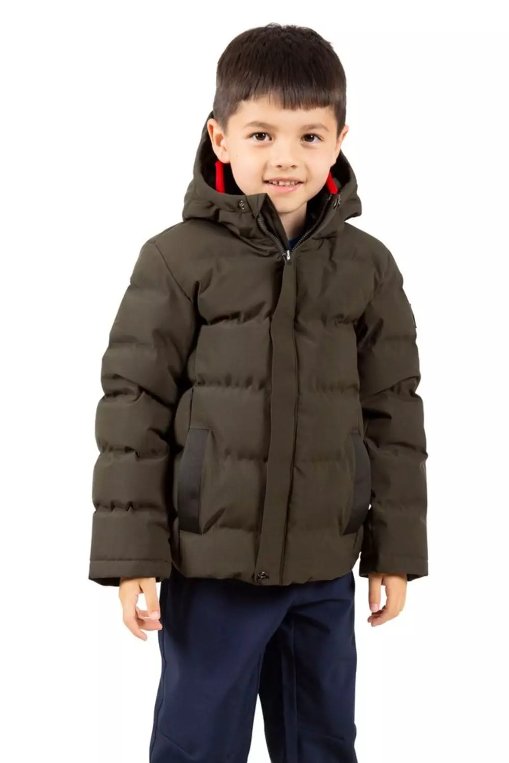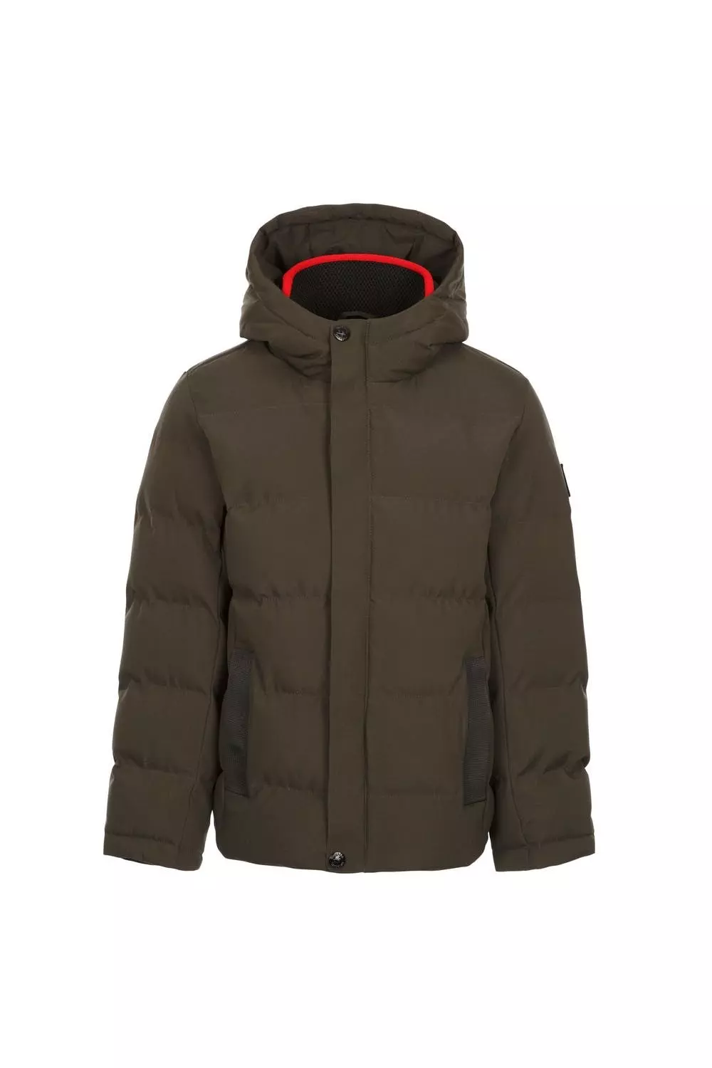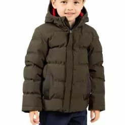 – Padded/quilted jacket- Grown on hood- 2 zip pockets- Knitted inner collar- Inner collar- Elasticated side panels