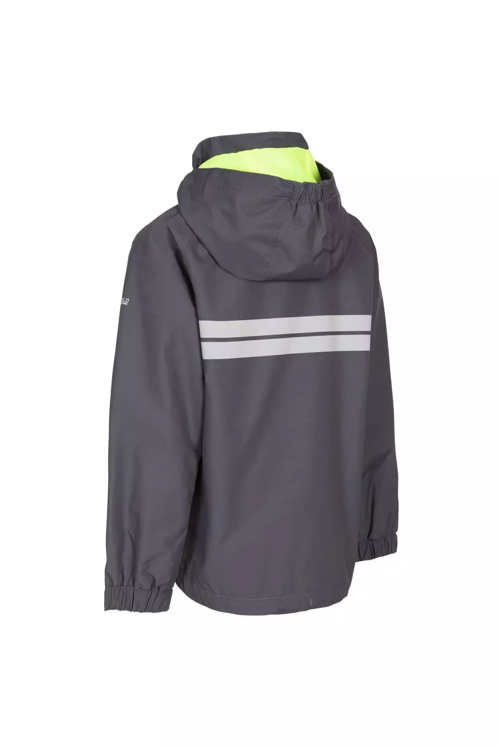 – Design: Back print, reflective.- Contrast lining, taped seams, woven.- Fabric technology: TP50, windproof.- Cuff: Adjustable wrist strap.- Neckline: Hooded.- Sleeve-type: Long-sleeved.- Hood features: Detachable hood, stud off.- Pockets: 2 inner pockets, zip, ripstop pocket, front.- Fastening: Contrast zip, full length.- Waterproof rating: 3000mm.