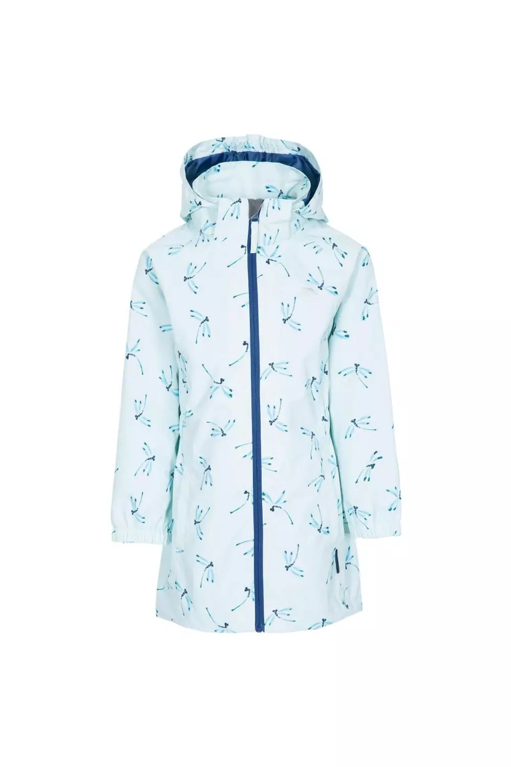 Frejja is a Trespass waterproof jacket for children that features a detachable hood long sleeves with elasticated cuffs 2 side pockets a full front zip front fastening a partially-elasticated waist a longer length at the back to cover the rear and is decorated with an all-over contrasting dragonfly print pattern. Dragonflies are often thought to be symbolic of transformation – something that their wardrobes could really do with. But with this Frejja kids raincoat they’ll be sorted.