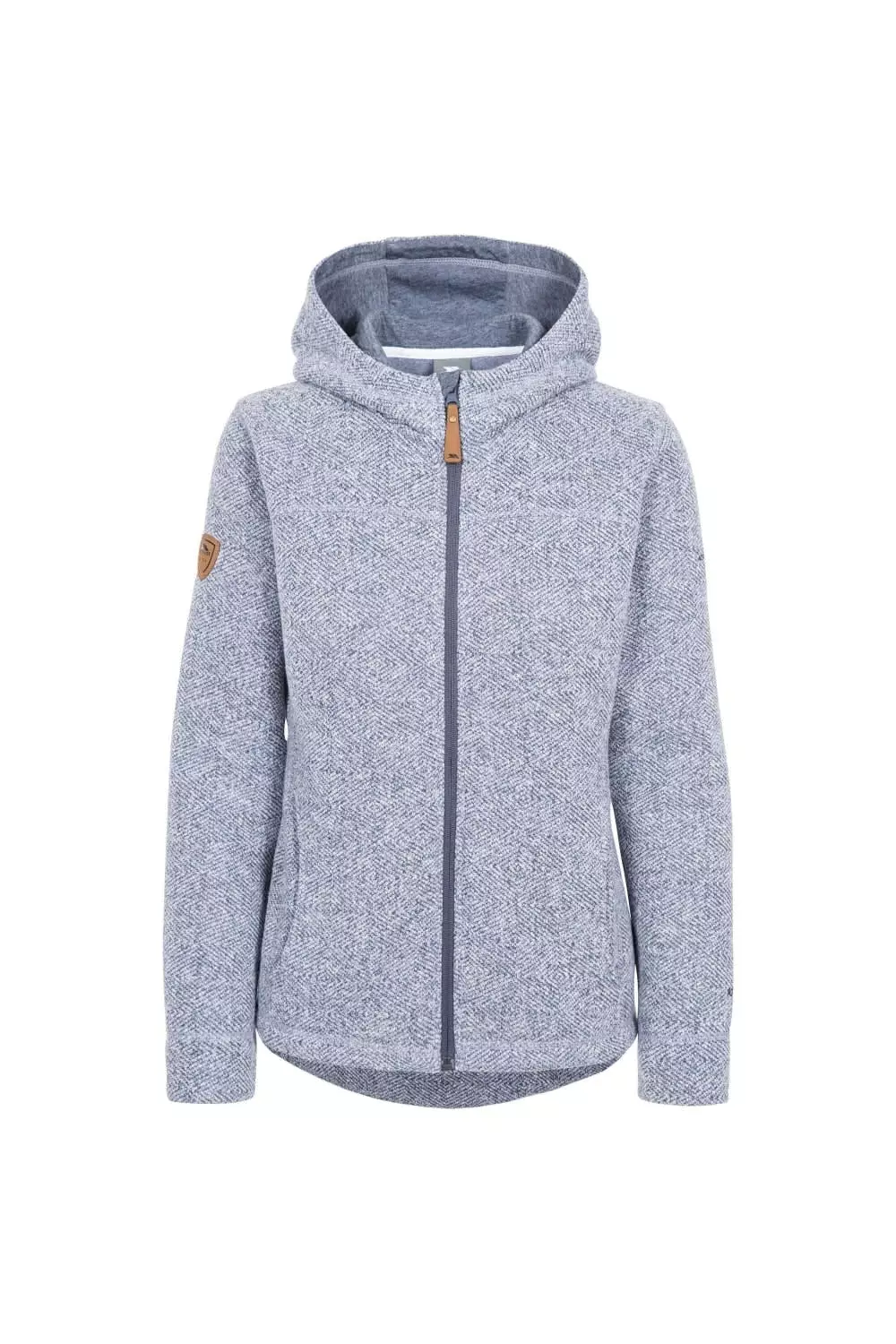 – Textured fleece with a brushed back- Jersey lined hood- Full front zip with inner facing- 2 pockets- Jersey lined cuffs- Leather trims- Airtrap- 260gsm