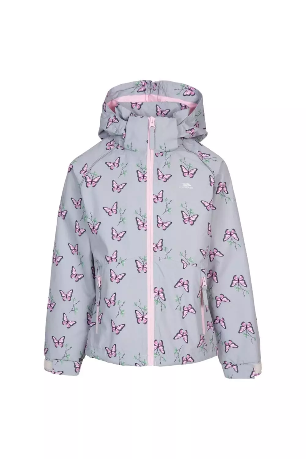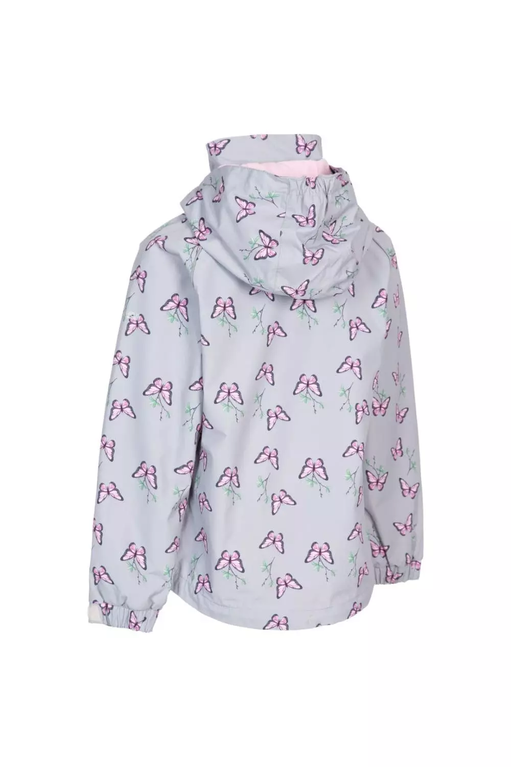 – Lining: Printed.- Design: Butterfly, Printed.- Adjustable Waist, Back Hem Vent, Taped Seams, Woven.- Fabric Technology: TP50, Windproof.- Cuff: Adjustable, Stud.- Neckline: Hooded.- Sleeve-Type: Long-Sleeved.- Hood Features: Grown On Hood.- Pockets: 2 Zip Pockets, Front, 2 Inner Pockets.- Fastening: Full Zip.- Waterproof Rating: 3000mm..- Gender: Kids