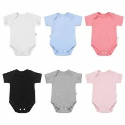 Sleeveless bodysuits in baby-soft cotton featuring solids.Envelope neck construction makes dressing and undressing baby easy, the lap shoulder construction stretches easily and comfortably over baby’s head, nickle-free snaps.